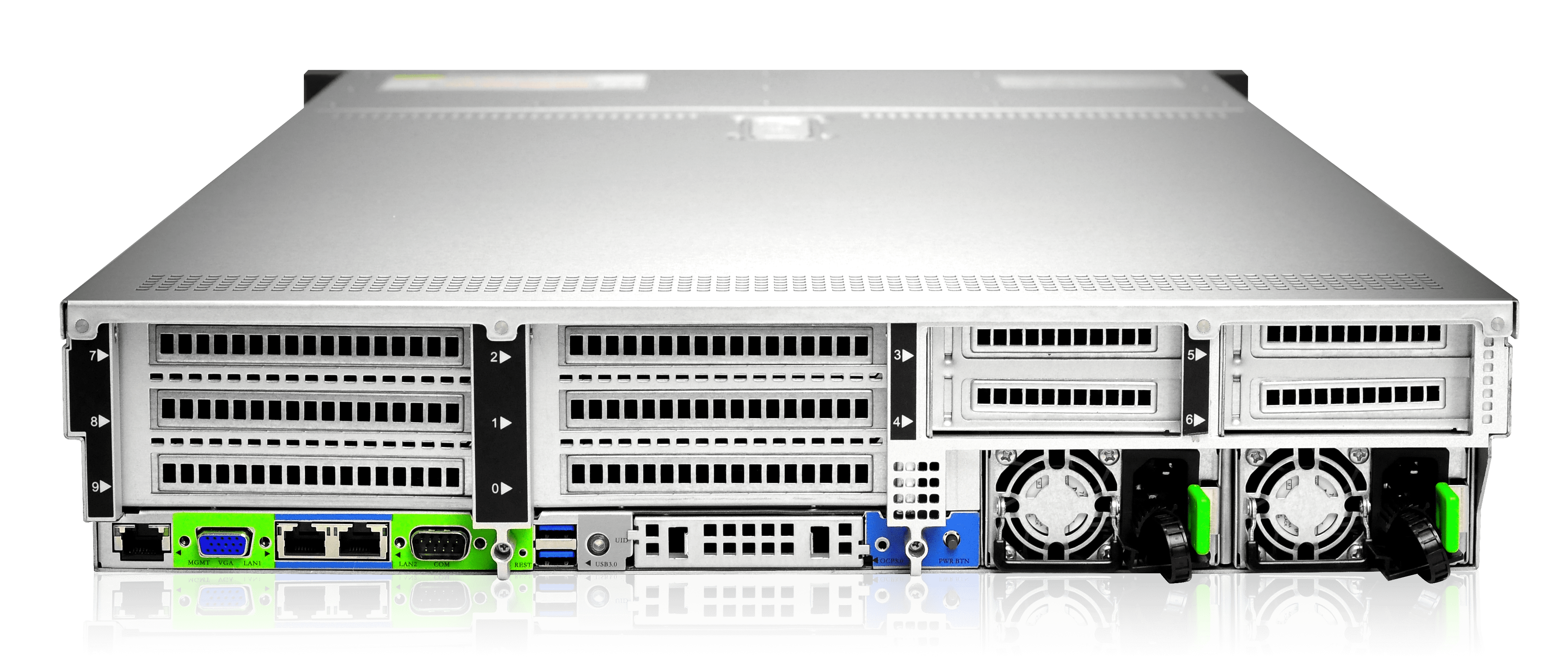 Frontal: 1 VGA, 2 USB 3.0 Panel trasero: 1 VGA, 1 puerto COM, 2 USB 3.0, 1 puerto de gestión de red, 2 puertos de red RJ45 Ranura OCP: 1 PCIe x8.