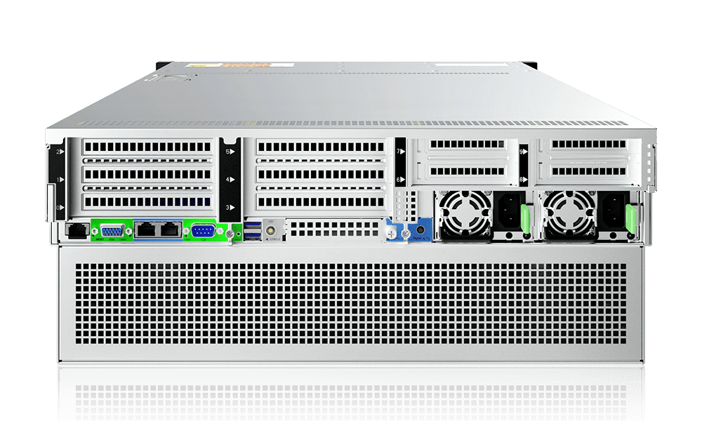 Panel frontal: 24 discos duros SAS/SATA de 3,5/2,5″ intercambiables en caliente Opcional: 4 discos duros SAS/SATA de 3,5″ o 4 discos duros SAS/SATA/U.2 de 2,5″ Almacenamiento interno: 2 puertos M.2 PCIe 4.0 x4, 2 ranuras SATA 7PIN (compatibilidad con SATA DOM), 3 puertos MiniSAS HD.